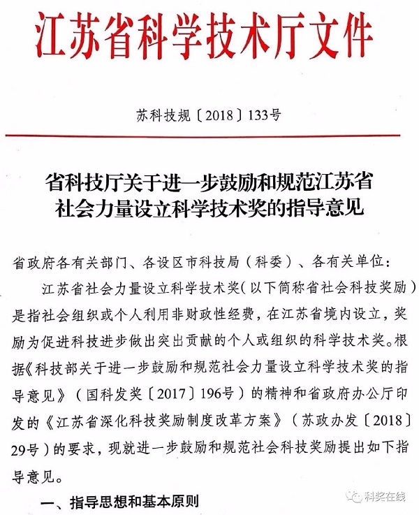 江苏省 ▎关于进一步鼓励和规范江苏省社会力量设立科