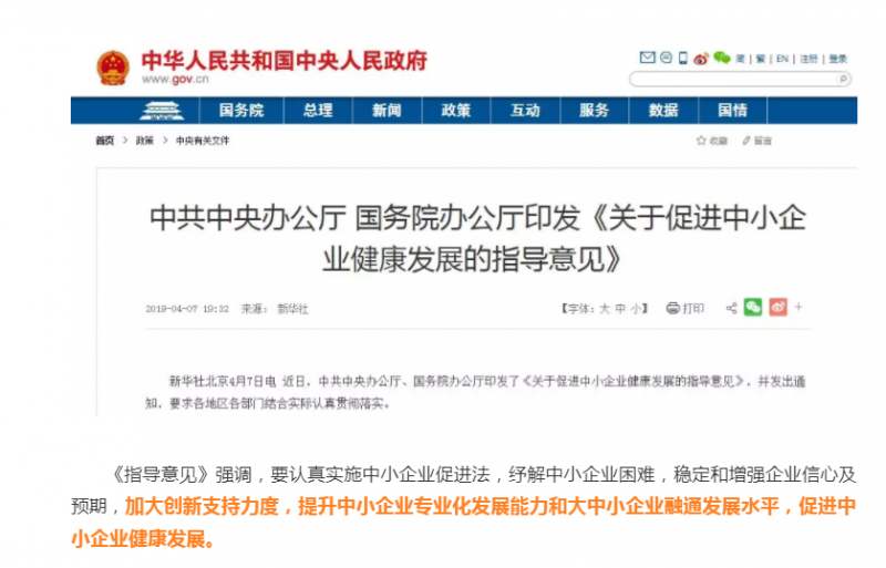 中共中央办公厅 国务院办公厅印发《关于促进中小企业