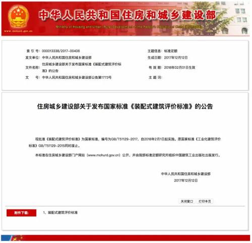 住建部公开《装配式建筑评价标准》全文,自2月1日起