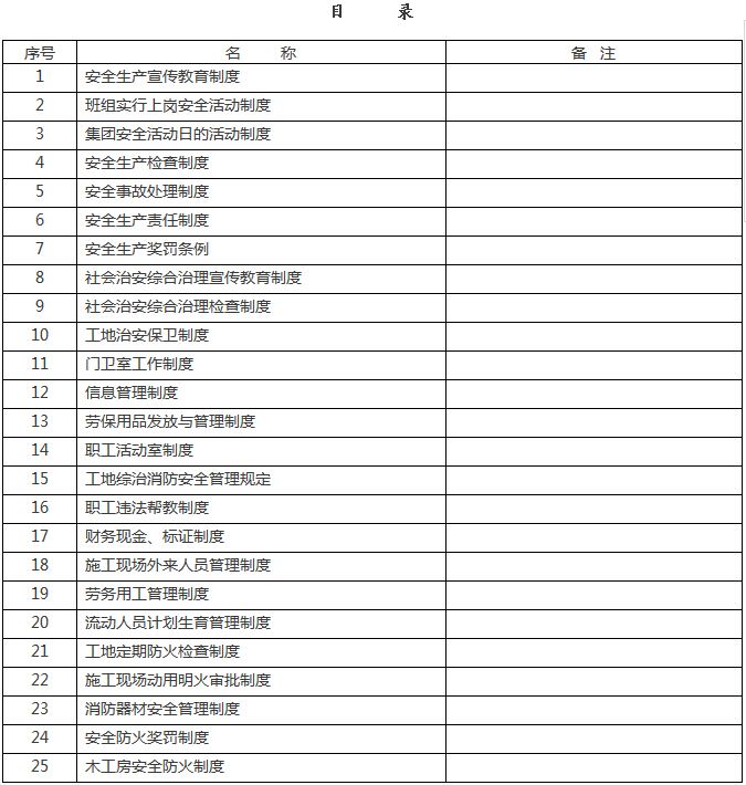 以下是上海某知名施工单位的项目部各项管理制度职责、规定范本,50项都全了!供施工单位拿来参考! 目 录 序号 ...