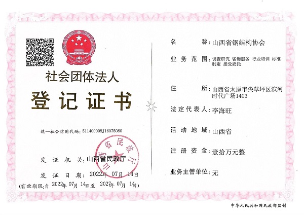 山西省钢结构协会于2017年1月17日由山西省民政厅批复成立,是由山西省钢结构部分企业和个人,以山西省钢结构与空间结构专业委员会为基础成立的社会团体机构。