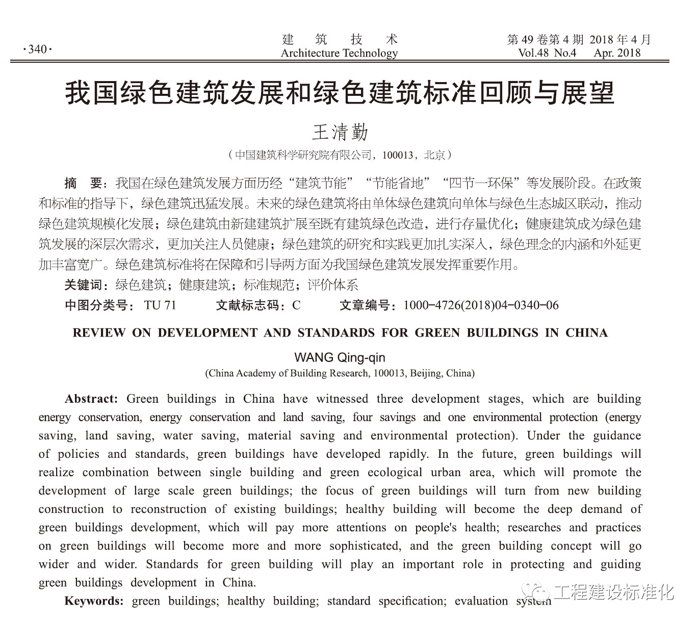 王清勤:我国绿色建筑发展和绿色建筑标准回顾与展望